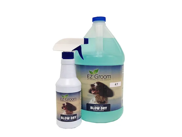 Käyttöohje: Pese ensin valitsemallasi Ez Groom shampoolla. Levitä sitten pyyhekuivaan turkkiin ja kampaa turkki niin, että aine leviää tasaisesti koko turkkiin. Föönaa sitten kuivaksi tavalliseen tapaan. Liiallinen käyttö ei tehosta vaikutusta. Voidaan käyttää myös kissoille.